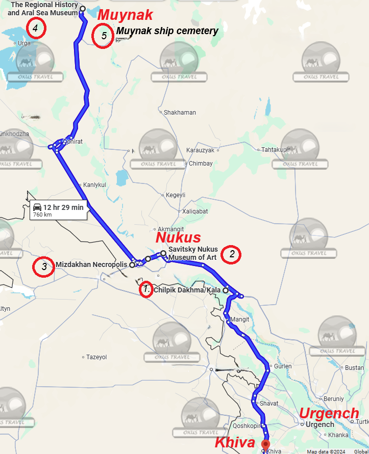 - 16.00 – visit o Muynak ship cemetery [5] and Muynak museum [6]